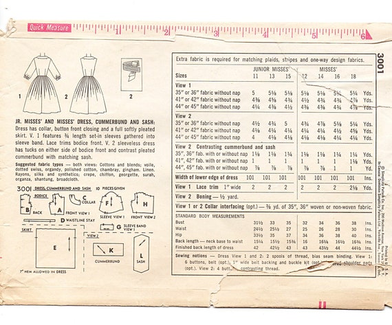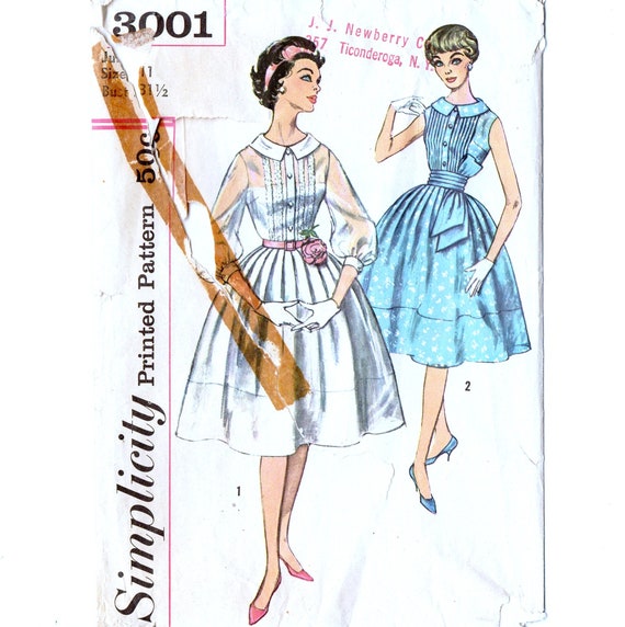 Simplicity 3001 Misses Dress 50s Vintage Sewing Pattern Junior Etsy